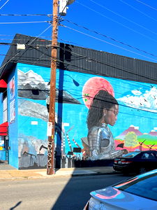 A young woman with short hair, dressed in casual attire stands confidently against a vibrant blue background featuring illuminated signage. Her pose suggests she's enjoying herself and the atmosphere of the venue. The text on the wall behind her reads 'This was all a dream', adding to the festive and relaxed ambiance.