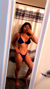 OnlyFans model Seductive Slxt showcases her allure in a captivating bathroom setting. Her blue bikini and confident pose are sure to turn heads.