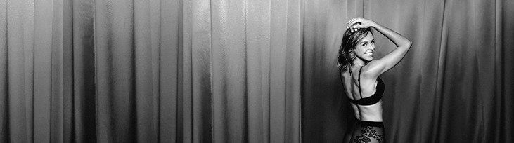 This image captures a fashion-forward young woman delicately posed on a chic indoor setting. The woman, estimated to be around 29 years old, holds a strong, confident gaze directly at the camera, her beautifully sculptured face radiating a sense of elegance and poise. She's seen sitting on a comfortable-looking couch, backed by a solid-colored wall that adds a simple yet stylish ambiance to the scene. The woman's clothing, or rather, lack thereof, adds an element of boldness and allure to the image. She is seen wearing a tasteful piece of lingerie, showcasing her well-toned limbs and thighs. Her chest is also subtly visible, further embellishing the sensuous undertone of the shot. The choice of her attire, coupled with her confident demeanor, suggests she could be an art model or perhaps a lingerie model. The way she interacts with the furniture around her, including the sofa she's sitting on and possibly a chair just out of view, contributes to the overall artistic composition of this stylish indoor shot. Her presence and fashion sense bring a touch of sophistication to the image, making it a compelling visual narrative of female empowerment and elegance.