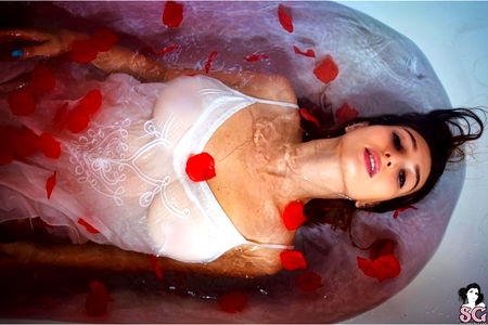 This image showcases a young woman, presumably a professional model, participating in an indoor photo shoot. The lady is striking a pose, exhibiting a stunning piece of lingerie. Her attire consists mainly of an undergarment set in a lingerie top style, highlighting her toned abdomen and subtly revealing her navel. The lingerie, possibly a brassiere top, seems to be the focus of the image, suggesting that it might be a fashion or clothing-related shoot. The model's face, radiating warmth and confidence, is clearly visible, adding a personal touch to the photo shoot. This suggests she is comfortable and experienced in front of the camera. In addition to the lingerie, she is adorned with fashion accessories that serve as embellishments to her overall look. One noticeable accessory is a rose, hinting at a romantic or feminine theme. The presence of this flower also adds a touch of nature to the indoor setting. The atmosphere of the shot is intimate, delicate, and stylish, reflecting the lady's elegance and the photographer's artistic vision.