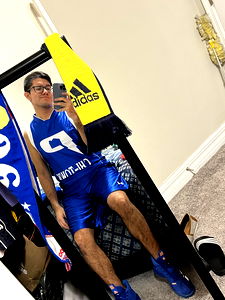 A creative and vibrant model photoshoot set in a bedroom, showcasing the model's unique style. Chris S is seen striking poses with different props like a basketball jersey, sports equipment, and personal items, reflecting his versatility and personality.