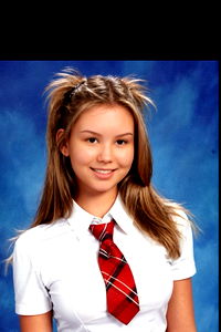 The image captures a radiant young woman, approximately 21 years of age, who is stylishly dressed and poised with an infectious smile. She is the focal point of the portrait. Her face, the centerpiece of the photograph, is underscored by her radiant smile that communicates an air of confidence and amicability. Her attire is smart and sophisticated; she is wearing a shirt with a collar, which is neatly accessorized with a necktie. The necktie is quite a distinctive part of her outfit, highlighting her unique sense of style. It's an unexpected fashion accessory that adds a touch of originality to her look. Her shirt, paired with the necktie, contributes to an overall look that's somewhere between business casual and chic. It's unclear whether she's also wearing a dress or if the shirt is part of a larger ensemble, but regardless, she pulls off her outfit with effortless charm. This portrait is not just a picture of a girl; it is a celebration of youth, style, and the confidence of a young woman comfortable in expressing her individuality through fashion.