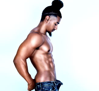 Simbathedancer, the popular fitness and body positivity model on OnlyFans, strikes a confident pose for his fans. He's showcasing his well-defined physique in a white pair of briefs, highlighting his athletic build. The photo is taken against a plain background to keep the focus on the subject.