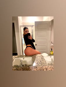 OnlyFans model, Sky, in a black lingerie pose for the camera in front of the bathroom mirror. Her unique and bold style stands out.