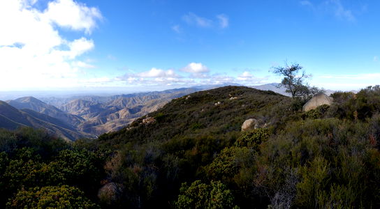 A breathtaking view of a mountainous landscape, with lush greenery and clear blue skies. The perfect spot for nature lovers.