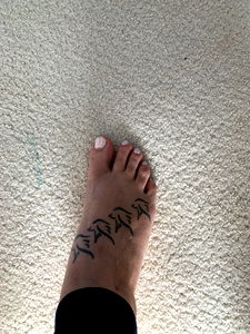 A visually striking tattoo display on Sophie's leg, celebrating her OnlyFans creator status. #InkLovers #Tattoos #CreatorVibes