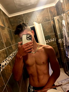 Spencer Prince, a popular OnlyFans model, showcasing his physique in this shirtless bathroom photo. Spencer is known for his athletic builds and love of fitness.