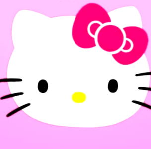 This is a charming digital image of a famous cartoon character, Hello Kitty. The kitty appears to be happy and youthful, wearing her signature pink bow on top of her head. The background is a plain pink color, which contrasts nicely with the white outline of the kitty's face. This image would likely appeal to fans of cute and adorable characters.