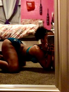 A seductive Atlanta-based model, Spicy Mami Shay, poses for a photo. She is wearing lingerie and is leaning against a bed. Her pose and outfit suggest a playful and provocative style.