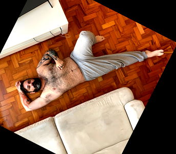 A striking image of Storm Sol, with his beard and tattoos accentuating his rugged appearance. He is captured in a candid moment, lying in bed, displaying his well-defined muscles and captivating gaze.