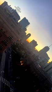 A captivating city skyline at sunset, featuring a tall building in the foreground. The view offers a glimpse into the bustling life of San Francisco.