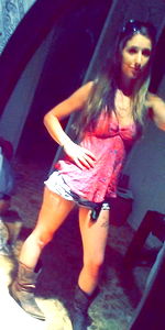 OnlyFans model Sugarpie0094 exudes confidence with a flirty pose. Her cowboy boot-clad feet add a western twist to her look.