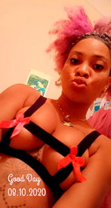 This is a photo of a model posing in black lingerie, taken in an indoor setting. The model appears to be a young adult with a confident expression. She has a unique hairstyle and is wearing red hair extensions. In the background, there's a piece of wall art, suggesting a personal or home environment. There are no visible texts or branding in the image. If you have any questions about this image or need information related to it, feel free to ask.