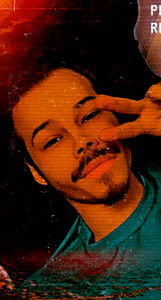 Onlyfans model Tarxan posing playfully in a photo with a filter effect, making a peace sign. The background is blurred with warm tones. 20 years old male. #onlyfans #tarxan #peacesign #filter #backgroundblur.