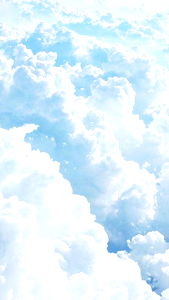 High-angle photograph showcasing expansive white clouds against a light blue sky, taken from an airplane window with the silhouette of a model posed in front.