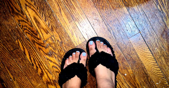 Enjoying some downtime with her feet up on the bed. She's sporting a fresh pedicure and relaxing with her favorite handbag.