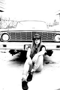 A candid pose in front of a classic car. RYANNโขโขSANTIAGO is a social media influencer based in Washington, known for their personal style.