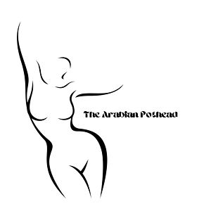 An intriguing graphic design featuring an illustration of the top half of a woman's body from the neck down with a hint of her hair. The text 'THE ARABIAN POSTHEAD' is superimposed over the illustration.
