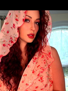 This image captures a young, fashionable woman in the midst of a professional photo shoot. The woman, estimated to be about 24 years old, is the focal point of the composition. She has a human face that exudes confidence and allure. Her long hair, styled meticulously, falls beautifully around her shoulders, adding to her overall appeal. She is wearing striking, glossy lipstick, its rich texture accentuating the fullness of her lips. Her eyelashes are long and luscious, further highlighting her captivating eyes. The impression she gives off is that of a professional model, well-versed in the art of posing and presenting herself in the most flattering light. She's dressed in stylish clothing, further cementing her status as a fashion-forward individual. The setting appears to be indoors, with a window visible in the background, letting in a soft, natural light that illuminates the scene. The overall color scheme has a hint of red, which ties in well with the boldness of her lipstick. The image exudes a sense of beauty, elegance, and high fashion.