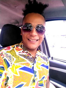 The DHL Guy, known for his vibrant attire and friendly demeanor, is seen in a light-hearted moment. He's captured mid-smile against a simple backdrop. His yellow polo shirt stands out and complements his overall ensemble. His pose suggests he's comfortable in front of the camera and ready to share his day with you!