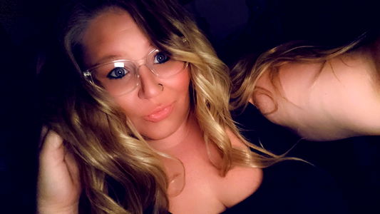 This is a portrait of a person who appears to be a model for OnlyFans. The model is wearing glasses and a green top. They have blonde hair and are looking directly at the camera. Their pose suggests they are comfortable in front of the lens.