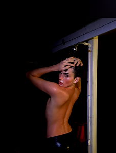 Thxxxckums, the enigmatic Onlyfans model, poses with a relaxed demeanor against a stark black background. His gaze is direct and engaging, hinting at an air of mystery. The image captures his unique style and the confident expression that has made him a popular figure on social media.