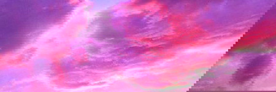 A serene image of a sunset with clouds, featuring hues of purple and pink. A clear sky forms the backdrop.