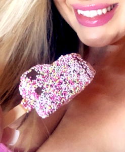 Lovely OnlyFans Model Trixxy is seen with a playful heart-shaped donut, showcasing her delightful side. She is captured in London. Trixxy's charm and allure make this image a captivating sight to behold.