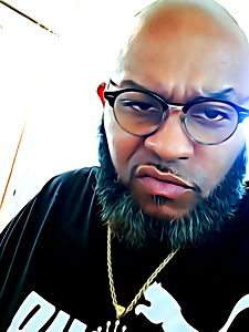 DatNiggaTwist, a rapper from Los Angeles. He is known for his grime style and distinctive beard. In this image, he's wearing a black shirt and glasses, giving off a cool and edgy vibe. His beard adds to his signature style.