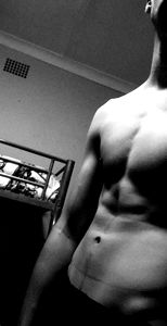 Famous Onlyfans model Andre Meier posing shirtless in a bedroom. Stunning abs and defined muscles. A must-see for fans of fitness and intimacy. Exclusive content available on his Onlyfans page.