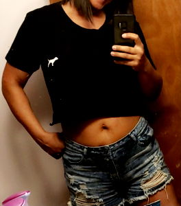 Desiree Paige, a popular model on OnlyFans, shares her workout routine. In this image, she is posing confidently in a black crop top and denim shorts while showcasing her toned physique. Her powerful presence in the gym reflects her dedication to fitness. As an influencer, she inspires others to embrace their bodies and strive for their goals.