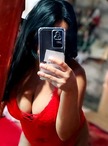 Sunflower's Alluring World: Red Lingerie & Mirror Selfies