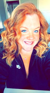 A cheerful young woman posing for a photo with a smile. She is seated at a desk and appears to be in a comfortable setting.