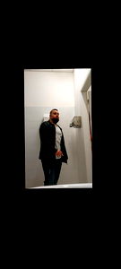 Alex is a man with a beard, wearing a black leather jacket and a hat. He has short hair and a tattoo on his right arm. In the background, there's a couch and a door. This image may be used for various purposes such as creating a profile on OnlyFans or a dating app.