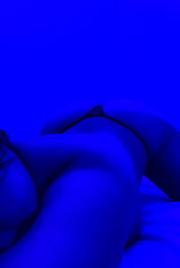 The image captures the beauty and allure of Lola in her OnlyFans model photo. She's posing with confidence, her body language exuding sensuality. The blue gradient background adds to the mystique of the image. Lola is known for her striking features and engaging personality on the platform. This photo encapsulates a typical moment from one of her content releases.