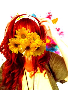 A young adult female model named Coco strikes a lighthearted pose, surrounded by yellow flowers. She is captured mid-motion, adding a dynamic element to the image. She appears relaxed and joyful, her playful expression mirroring the cheerful ambiance of the scene.