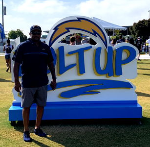 A man standing outdoors, smiling for the camera. He is wearing sunglasses, a cap, and a blue shirt with his hands in his pockets.