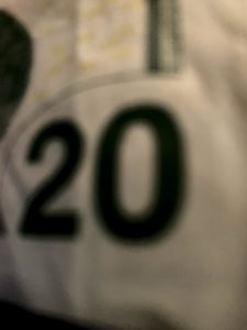 The image shows a close-up of what appears to be a sports jersey with the number '20' on it, indicating it could be from the year 2020. The material looks soft and the number is in bold text. The background is out of focus, emphasizing the jersey