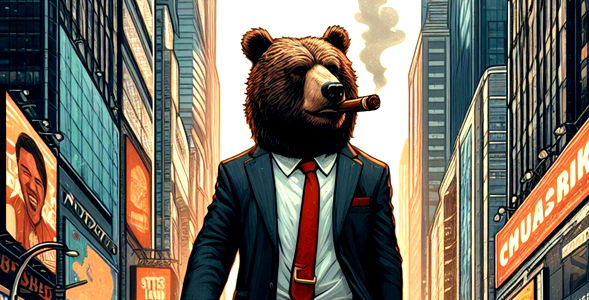 A man with a beard and mustache, wearing a red jacket. He is holding a cigar in his mouth and has a concerned or amused expression on his face.