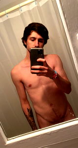 This is an image of OnlyFans model 'UrInternetDaddy'. He appears to be in his mid-twenties. In the photo, he is shirtless and showcasing his well-defined physique. The photo seems to have been taken in a bathroom, as indicated by the towel ring visible in the mirror's reflection. His expression is neutral, and he is taking a selfie with his phone held up. This image is part of his modeling portfolio on OnlyFans.