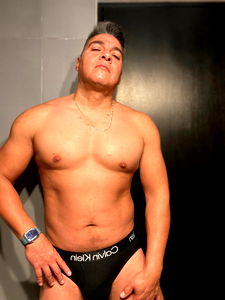 Model El Profe from Chihuahua, MX showcasing a strong and fit physique with minimal accessories, set against a brick wall. Onlyfans model name is El Profe.