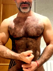 This image is a captivating portrait of a bare-chested man who appears to be indoors, leaning against a wall. One of the most striking features of the man is his well-groomed beard, which adds a sense of ruggedness to his overall appearance. His beard is not only a sign of facial hair but it also emphasizes his masculinity. In terms of physicality, the man's muscular frame is quite noticeable. His toned chest and stomach muscles are clearly defined and visible, indicating a high level of fitness and strength. The man's shoulders and joints are also visible, adding to the overall impression of physical wellbeing and athleticism. The flesh tones in this image are natural and realistic, further enhancing the intimate and personal nature of this portrait. The wall behind the man provides a simple and unobtrusive backdrop, allowing the viewer to focus entirely on the subject of the photograph. Despite the simplicity of the scene, the image is filled with details that create a powerful and engaging visual narrative.