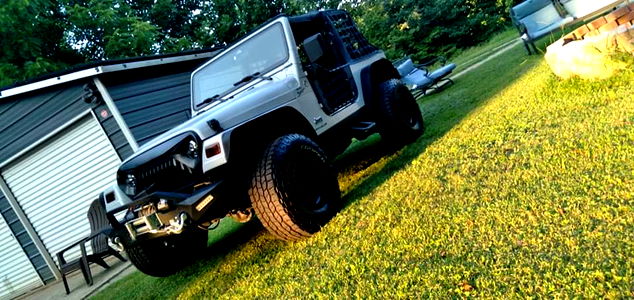 A bearded man with a tattoo is seen sitting in the driver's seat of a vehicle. He is wearing sunglasses, a red t-shirt, and is smiling. His arm is resting on the car's door frame. The image captures him looking out of the car window, seemingly driving down a street.