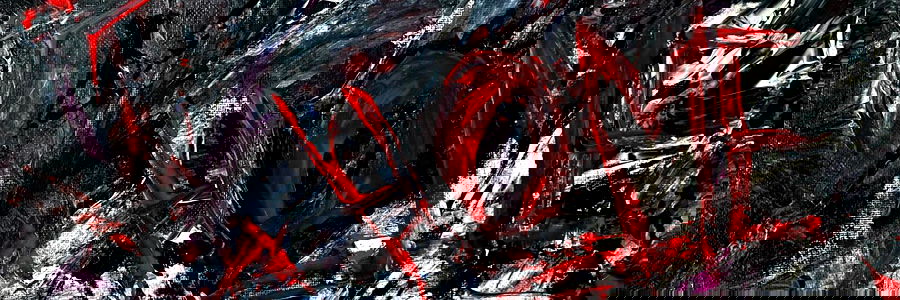 Vivid and colorful abstract painting with elements of text. Created by adult content creator Koda, showcasing her unique style.