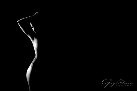 A captivating blend of art and modeling, featuring the stunning Elle Gee. Experience her elegance in this striking black and white photo.