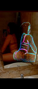 In this exclusive selfie, the mistress of fetishes captures a moment of candid introspection. She's seen from behind, her long hair cascading down her shoulders and her distinctive style accentuating her curves. Her gaze is directed off-camera, suggesting she might be deep in thought or simply enjoying the moment. The image is taken from her phone screen, adding a personal touch to the image. The background is blurred, drawing focus to her, highlighting her as the main subject of this image.