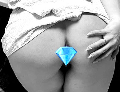 In this captivating image, the renowned OnlyFans model Lola Secret is captured in a series of provocative poses, surrounded by vibrant blue diamonds. She is the focal point, her alluring figure accentuated by the glowing gems in the background.