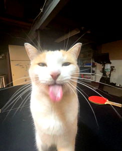 A young woman is captured in a candid moment, showcasing her lingerie and fishnet stockings. She is making a funny face, adding a touch of humor to the image. Her pose suggests a confident and playful personality.