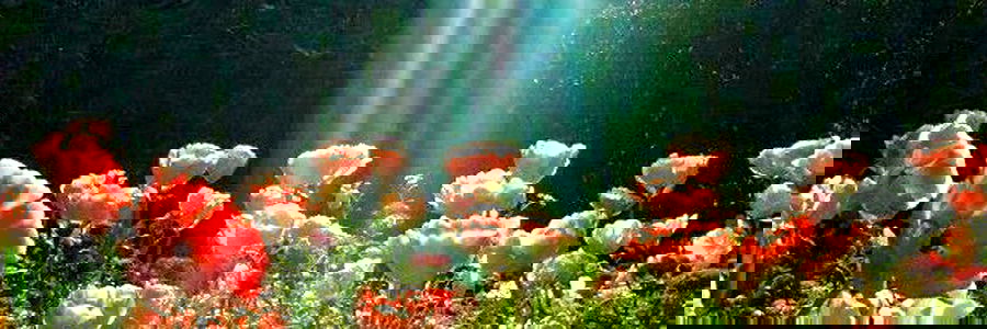 A picture of tranquility with vibrant flowers bathed in the warm glow of the sun. The soft light illuminates a beautiful scene, evoking a sense of peace and relaxation.