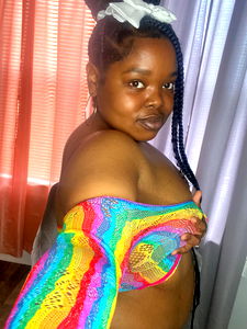 Saddity Princess, an OnlyFans model, is posing for a photo in a vibrant, multicolored swimsuit. She's seated on a chair with one leg crossed over the other, exuding a playful and confident vibe. Her pose suggests she might be promoting her content or celebrating a milestone.